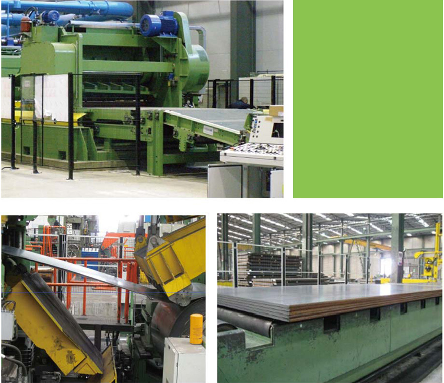 ◆热轧横切线采用高度可靠的机械性能实现板料的高品质的平整,高 精密进口加工中心确保板材应力的完全消除,进口定尺系统确保准确定长,友好的 人机界面保证操作的便捷横切线。主要功能有开卷、矫直、修边以及将钢带横切为 指定长度的钢板,剪切后的钢板经过钢板矫直机,喷号,然后进入堆垛机。